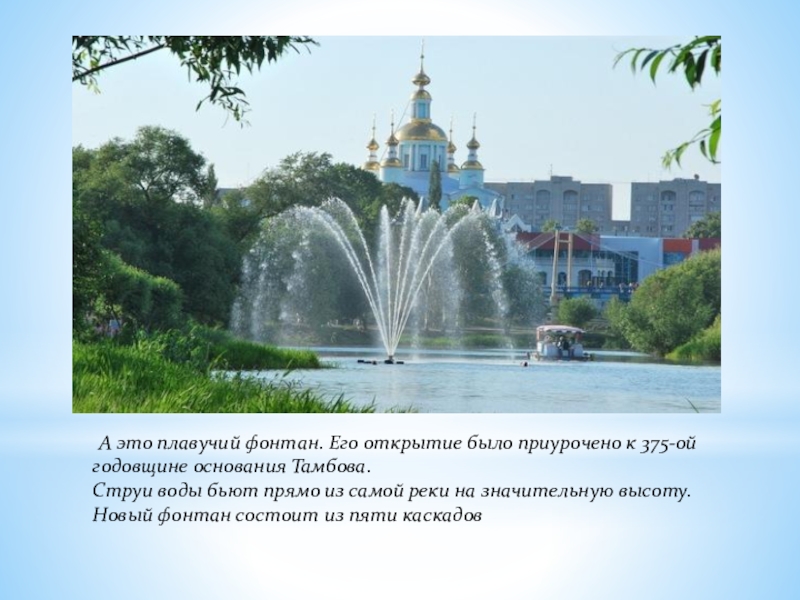 Слайд 13 Но одной из самых ярких достопримечательностей знаменитой тамбовской набережной, главным
