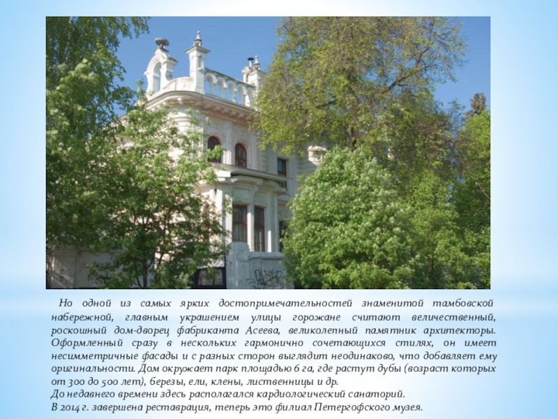 Слайд 12В живописном месте Тамбова, вблизи реки, в самом начале улицы, носящей