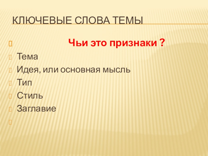 Ключевые слова темы Чьи это признаки ?ТемаИдея, или основная мысльТипСтильЗаглавие