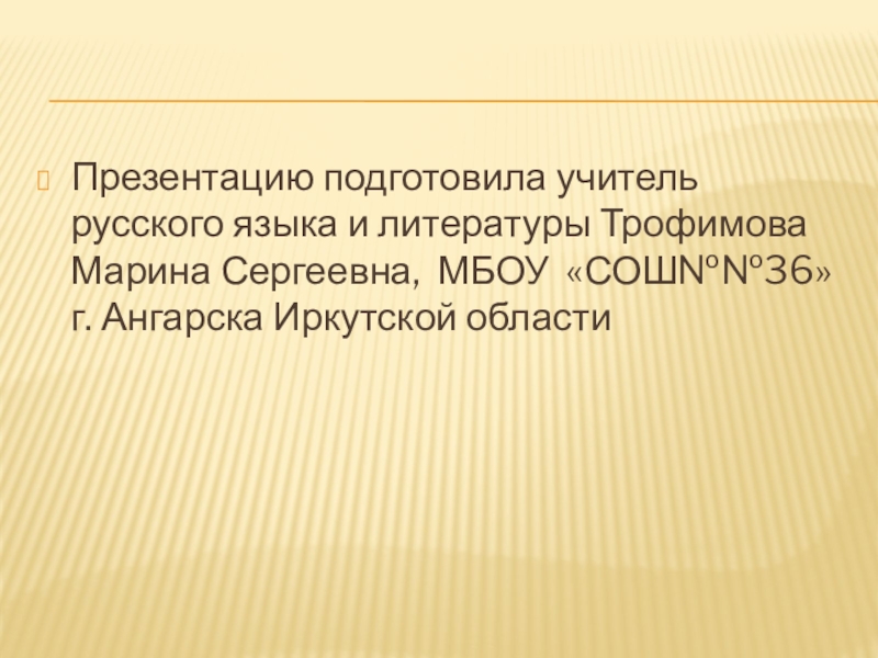 Презентацию подготовила учитель русского языка и литературы Трофимова Марина Сергеевна, МБОУ «СОШ№№36» г. Ангарска Иркутской области