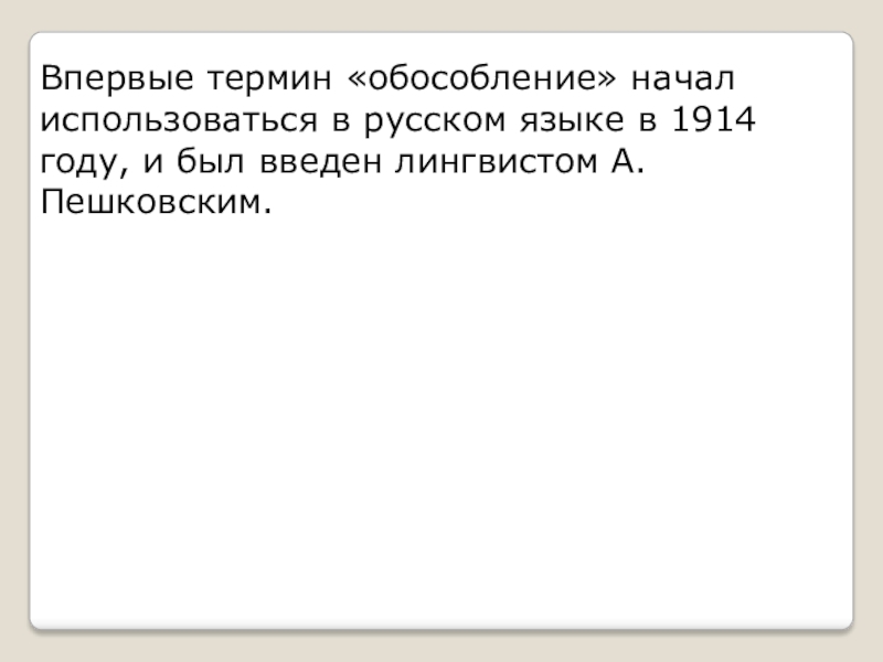 Слайд 8Впервые термин «обособление» начал использоваться в русском языке в 1914 году,