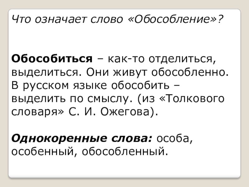 Слайд 4Что означает слово «Обособление»?