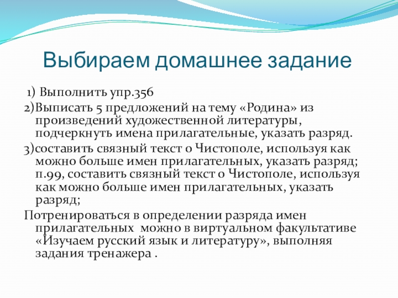Выбираем домашнее задание