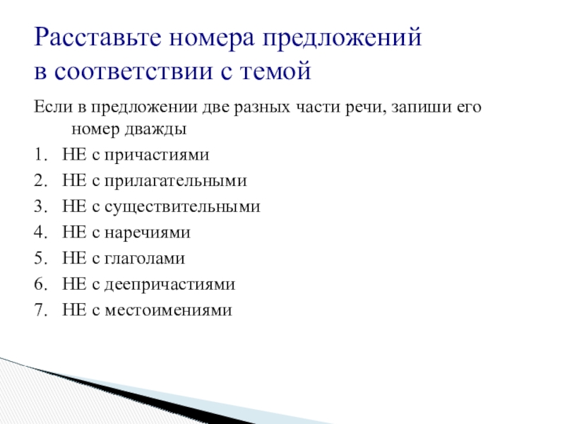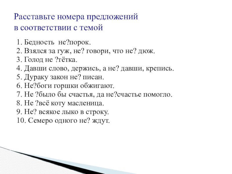 Расставьте номера предложений в соответствии с темой