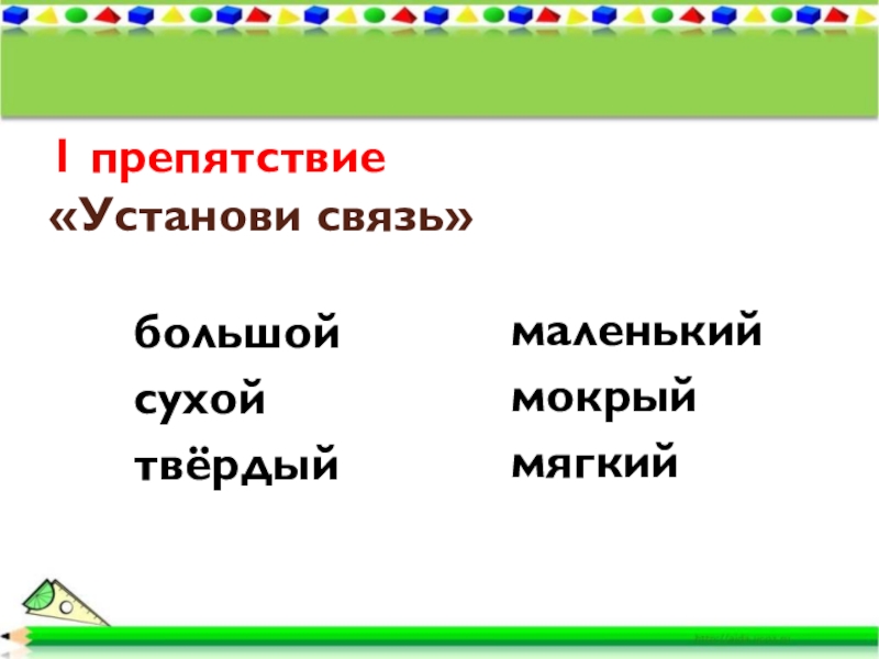большойсухойтвёрдыймаленькиймокрый мягкий1 препятствие  «Установи связь»