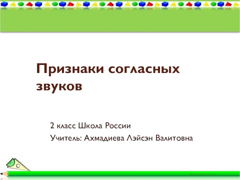 Презентация, доклад к уроку русского языка на тему Признаки согласных звуков (2 класс)