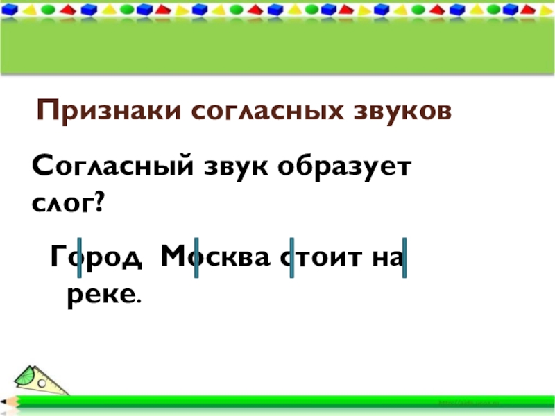 Город Москва стоит на реке. Признаки согласных звуковСогласный звук образует слог?
