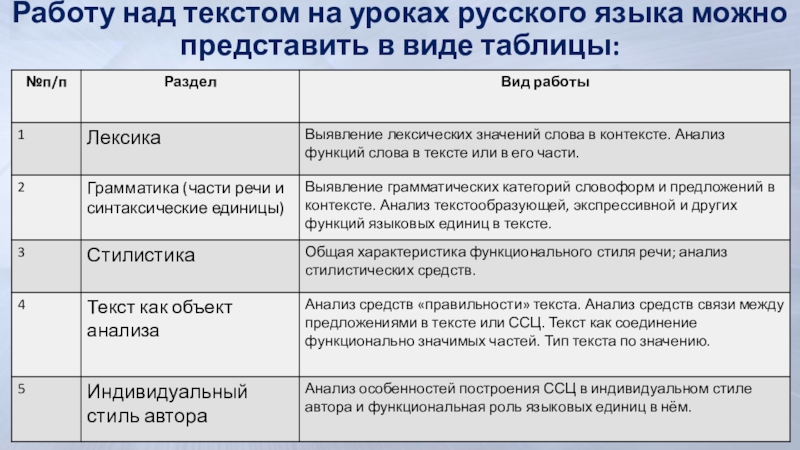 Слайд 28Работу над текстом на уроках русского языка можно представить в виде
