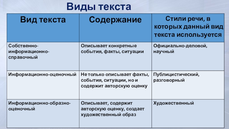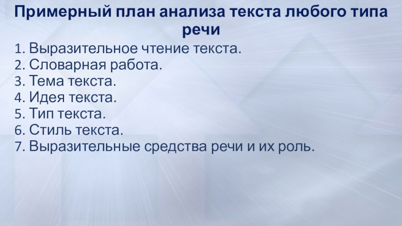 типологический (выделение в тексте ведущего типа речи, указание на сочетание в тексте различных типовых фрагментов);