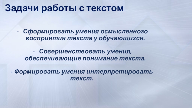 Сформировать умения осмысленного восприятия текста у обучающихся.