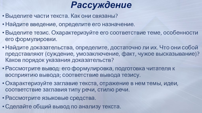 Найдите доказательства, определите, достаточно ли их. Что они собой представляют (суждение, умозаключение, факт, чужое высказывание)? Каков порядок указания доказательств?