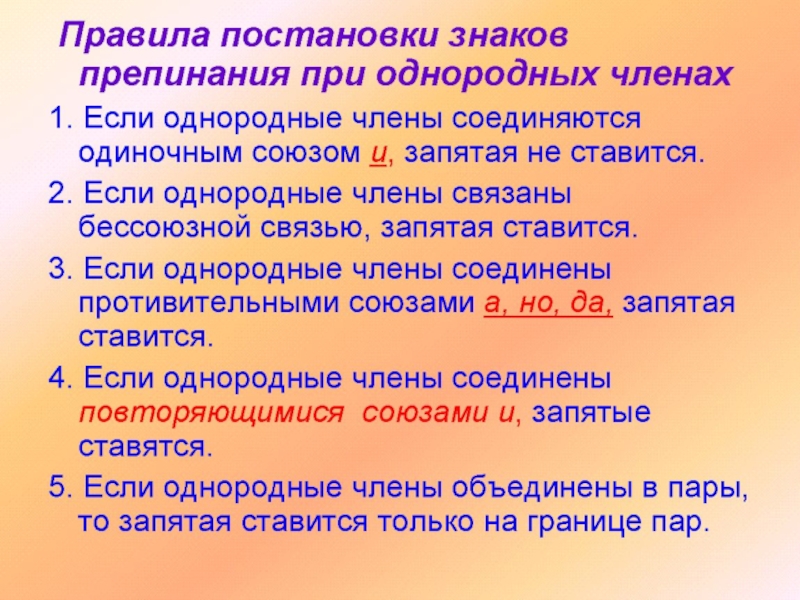 Презентация, доклад к уроку русского языка на тему Однородные члены предложения. Знаки препинания при однородных членах. 5 класс