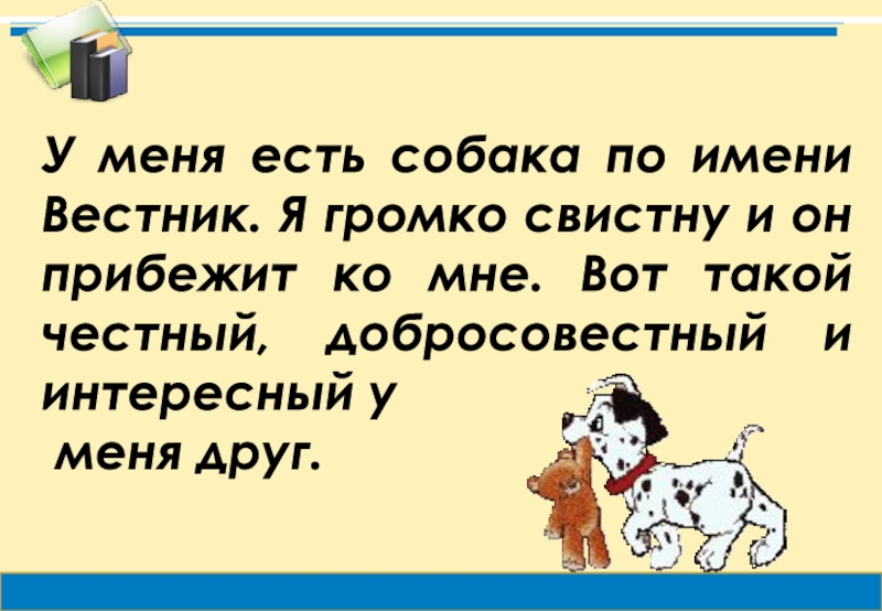 Слайд 7У меня есть собака по имени Вестник. Я громко свистну и