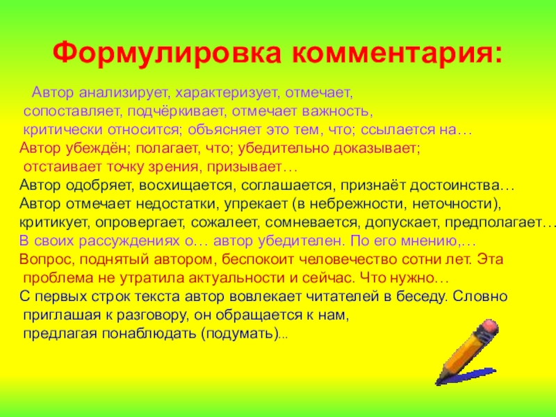 критикует, опровергает, сожалеет, сомневается, допускает, предполагает…