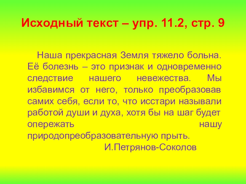 Слайд 14Исходный текст – упр. 11.2, стр. 9