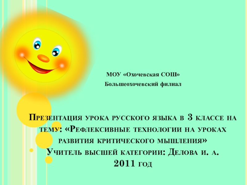 Слайд 1Презентация урока русского языка в 3 классе на тему: «Рефлексивные технологии