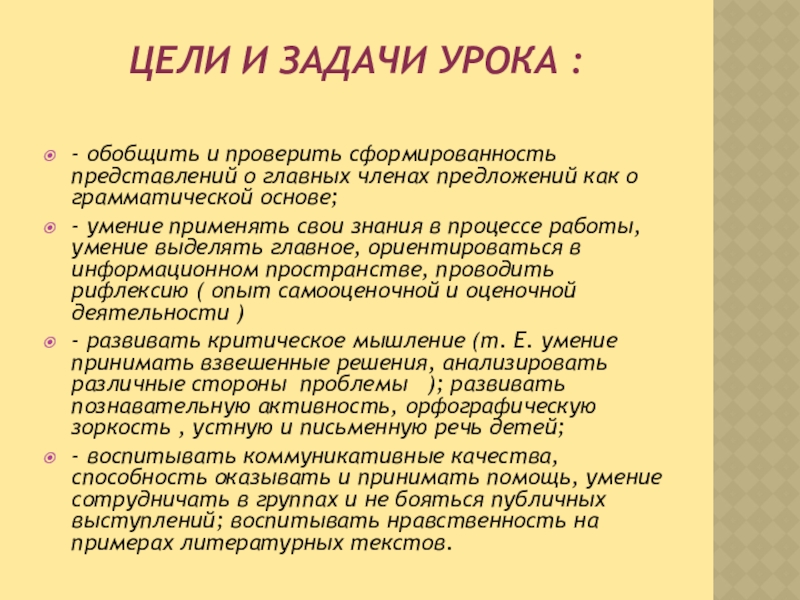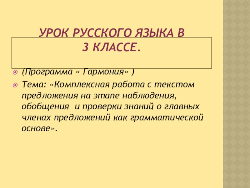 Тема: «Комплексная работа с текстом предложения на этапе наблюдения, обобщения и проверки знаний о главных членах предложений как грамматической основе».