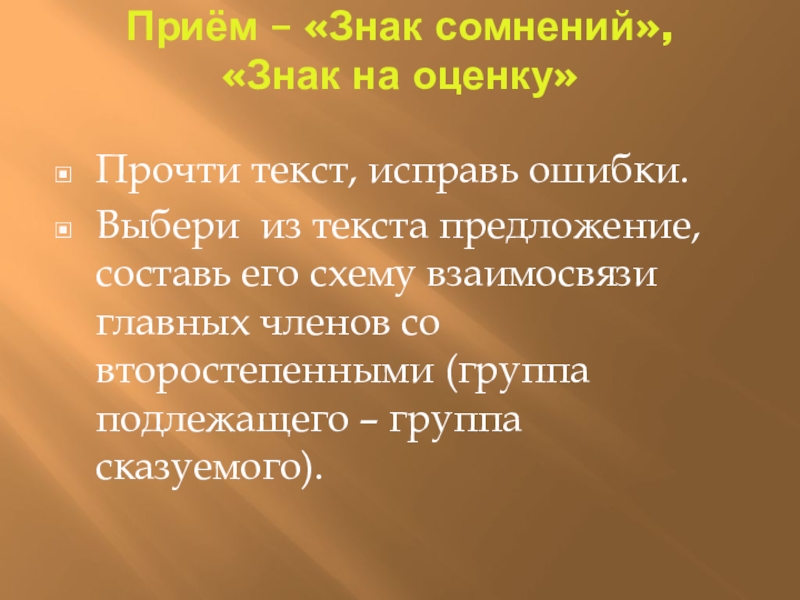 Слайд 16Приём – «Знак сомнений», «Знак на оценку»