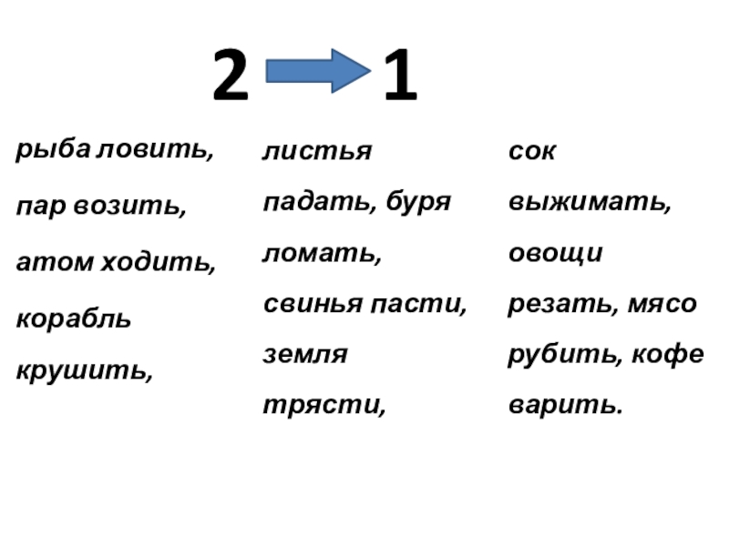 листья падать, буря ломать, свинья пасти, земля трясти,