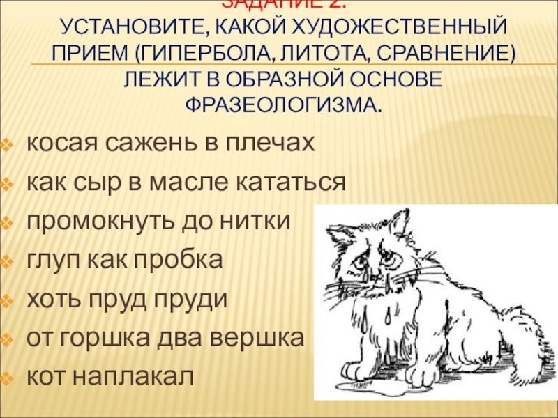 УСТАНОВИТЕ, КАКОЙ ХУДОЖЕСТВЕННЫЙ ПРИЕМ (ГИПЕРБОЛА, ЛИТОТА, СРАВНЕНИЕ) ЛЕЖИТ В ОБРАЗНОЙ