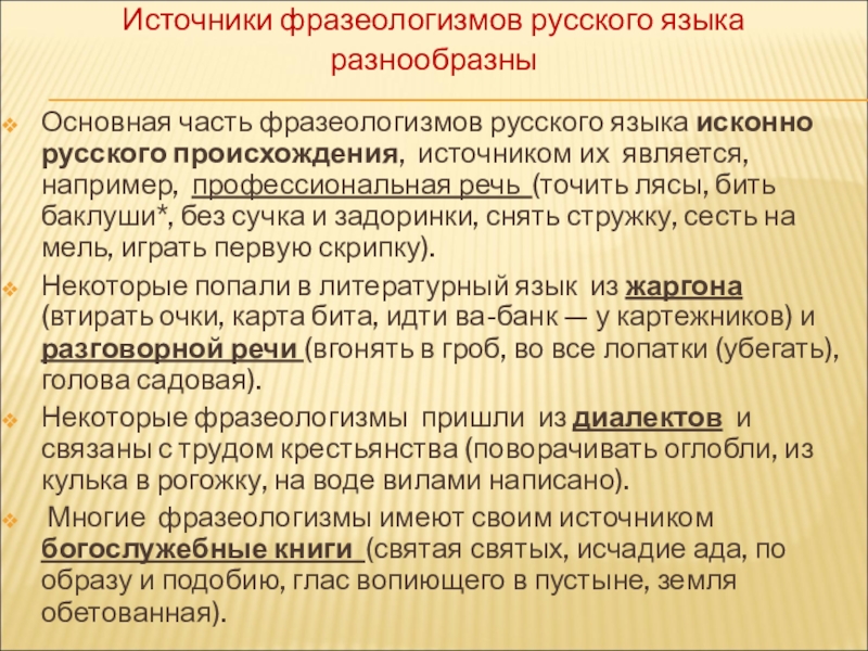 Слайд 17Источники фразеологизмов