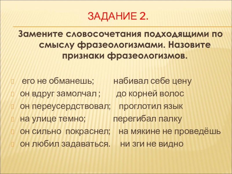 Слайд 9Фразеологизм и его признаки