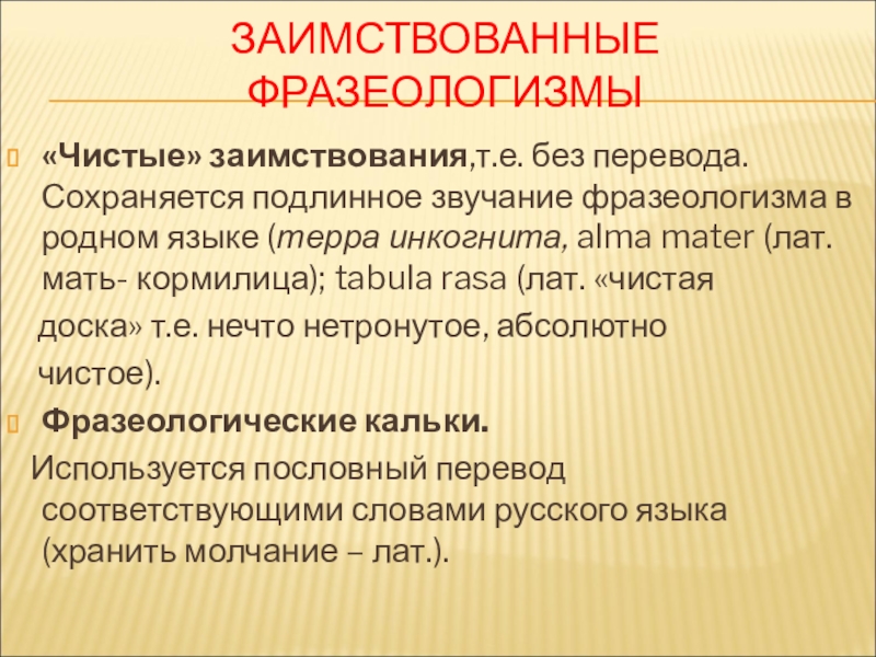 Заимствованные фразеологизмы, как и возникшие в русском языке, также созданы