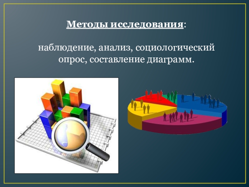 наблюдение, анализ, социологический опрос, составление диаграмм.