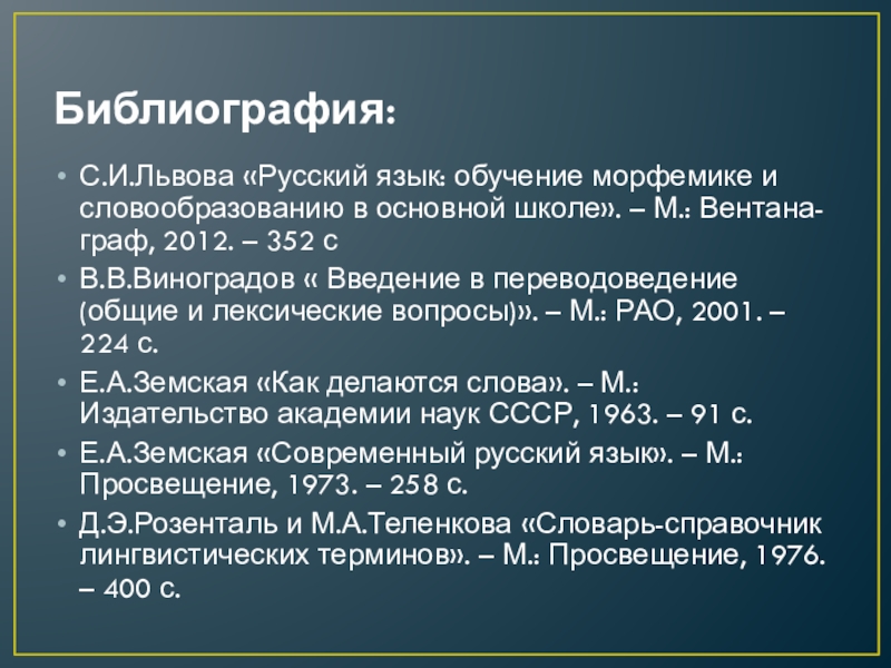 Е.А.Земская «Как делаются слова». – М.: Издательство академии наук СССР, 1963. – 91 с.