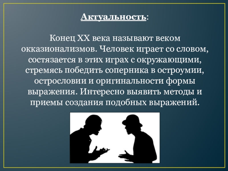 Конец ХХ века называют веком окказионализмов. Человек играет со словом,