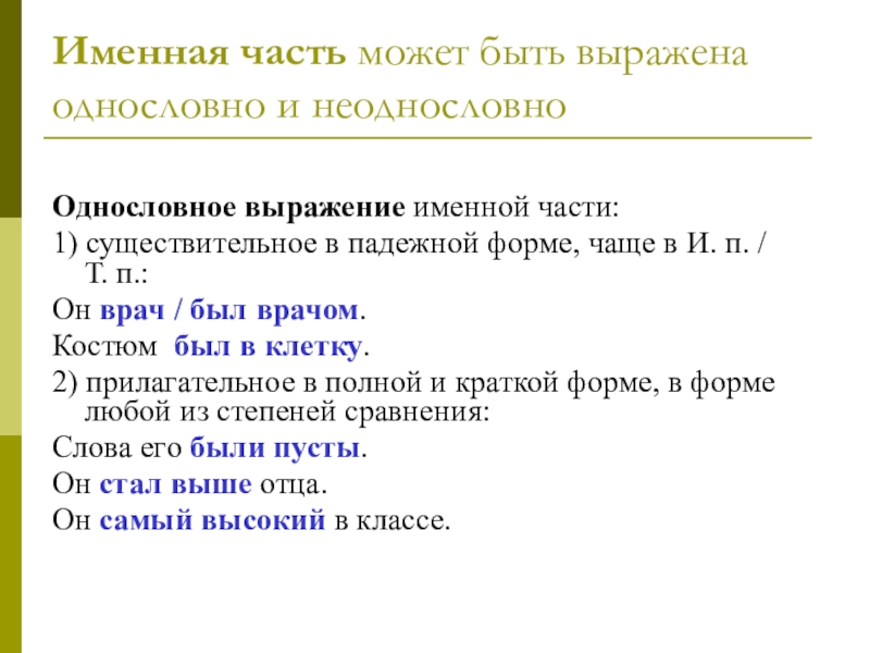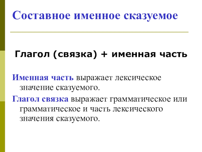 Глагол связка выражает грамматическое или грамматическое и часть лексического значения сказуемого.