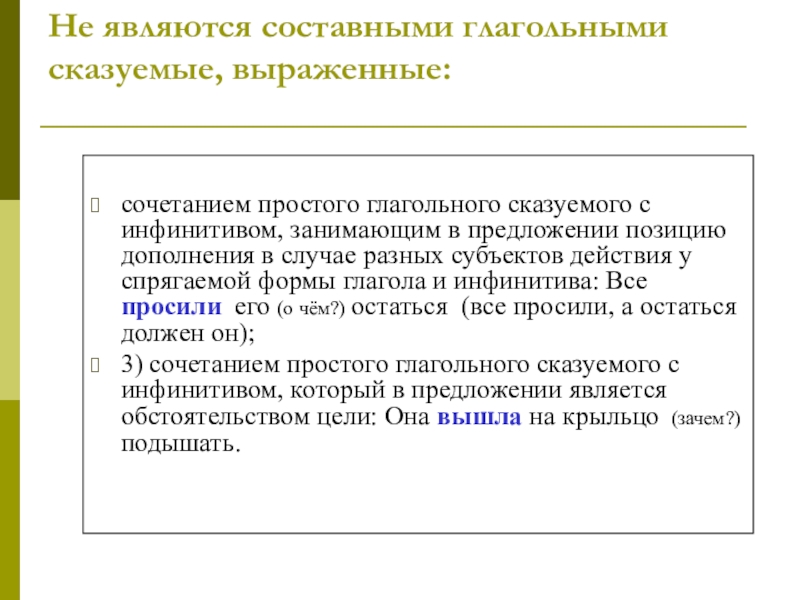 Слайд 9Не являются составными глагольными сказуемые, выраженные: