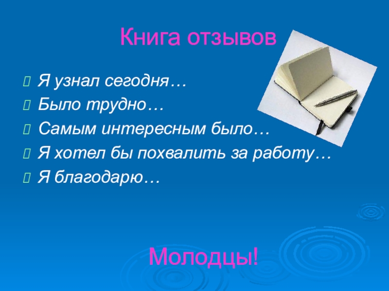 Это сайт презентаций, где можно хранить и обмениваться своими презентациями, докладами, проектами, шаблонами в формате PowerPoint с другими пользователями. Мы помогаем школьникам, студентам, учителям, преподавателям хранить и обмениваться учебными материалами.