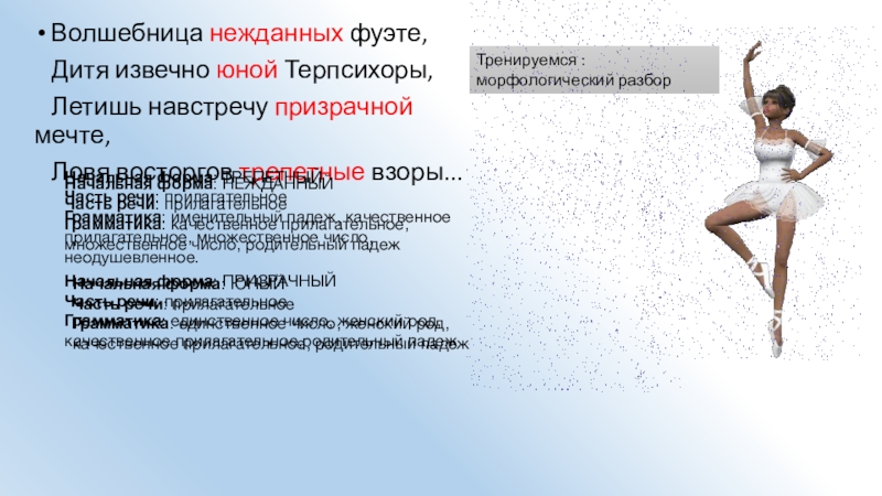 Грамматика: единственное число, женский род, качественное прилагательное,родительный падеж
