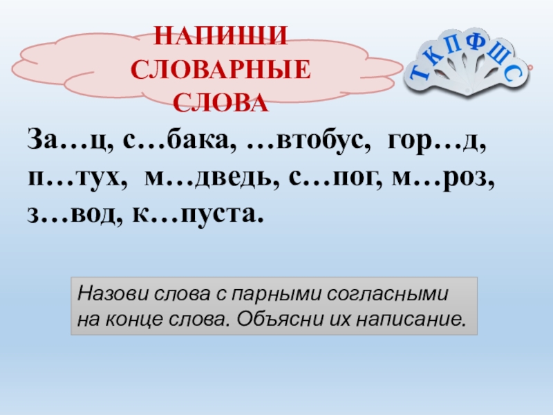 Назови слова с парными согласными на конце слова. Объясни их написание.