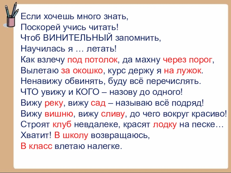 Чтоб ВИНИТЕЛЬНЫЙ запомнить,