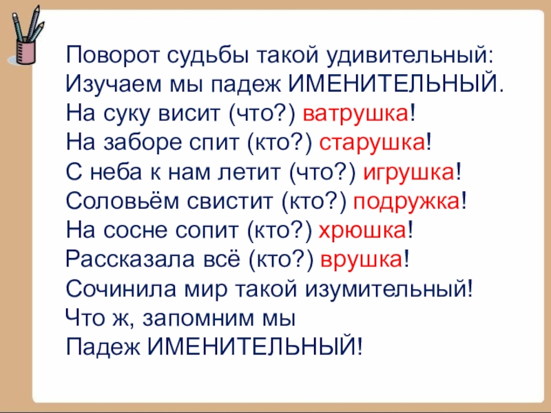 Изучаем мы падеж ИМЕНИТЕЛЬНЫЙ.