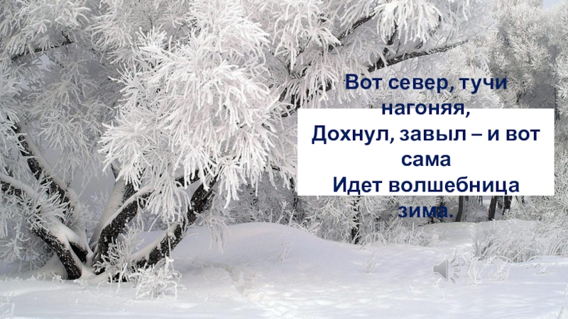 Вот север, тучи нагоняя,Дохнул, завыл – и вот самаИдет волшебница зима.