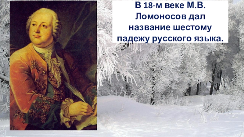 Слайд 12В 18-м веке М.В.Ломоносов дал название шестому падежу русского языка.