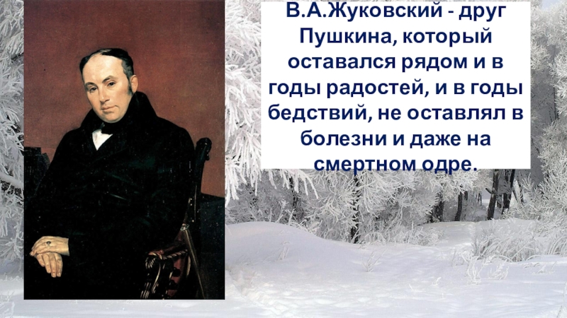 В.А.Жуковский - друг Пушкина, который оставался рядом и в годы радостей, и в годы бедствий, не оставлял