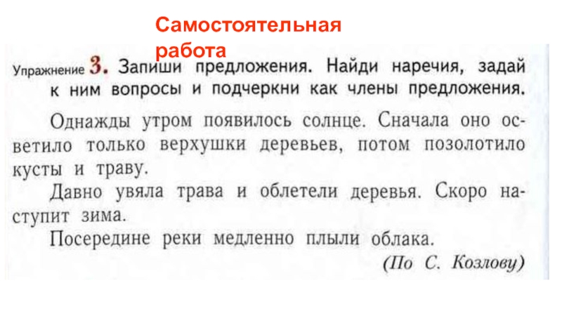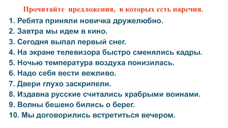 Прочитайте предложения, в которых есть наречия.