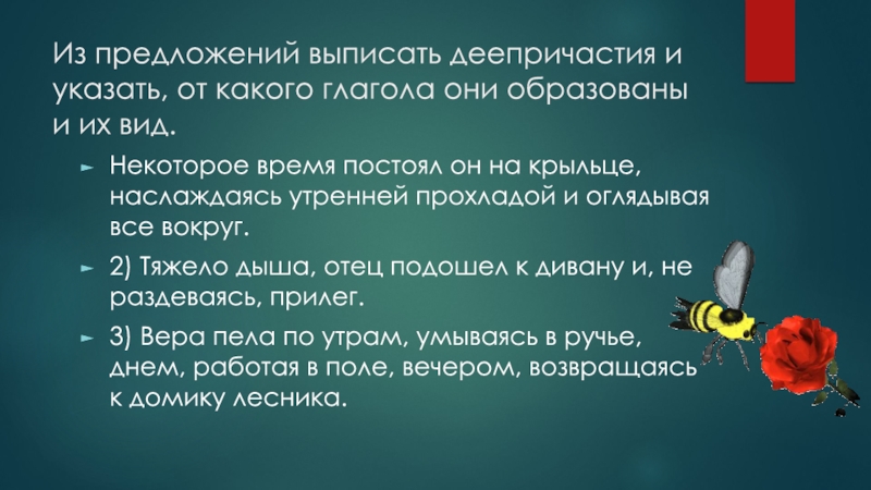 2) Тяжело дыша, отец подошел к дивану и, не раздеваясь, прилег.