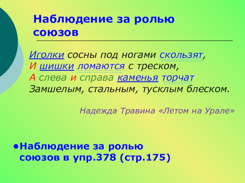 Наблюдение за ролью союзов в упр.378 (стр.175)