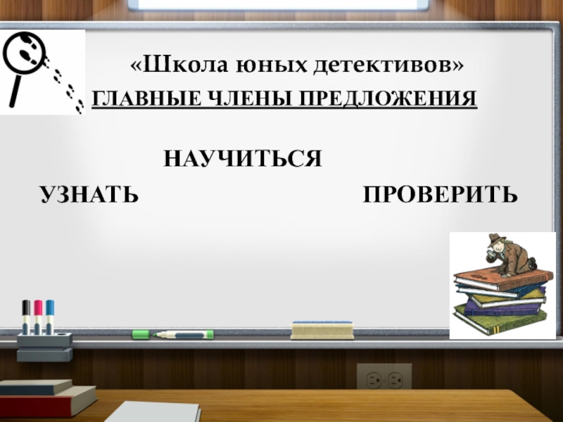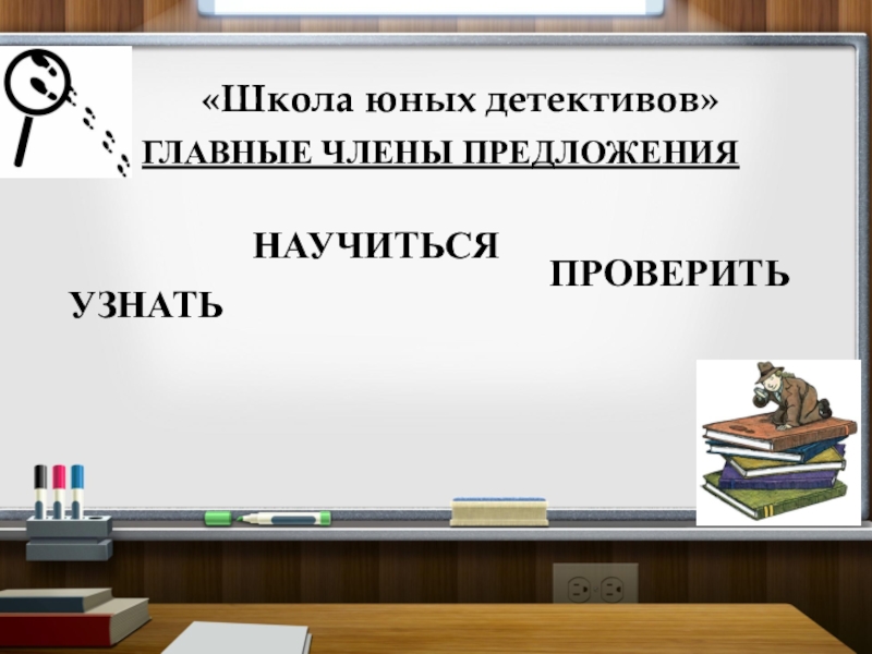 «Школа юных детективов»ГЛАВНЫЕ ЧЛЕНЫ ПРЕДЛОЖЕНИЯ УЗНАТЬ НАУЧИТЬСЯПРОВЕРИТЬ