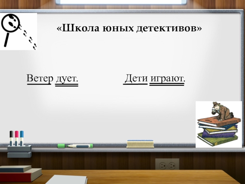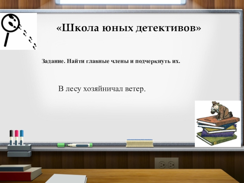«Школа юных детективов»В лесу хозяйничал ветер. Задание. Найти главные члены и подчеркнуть их.