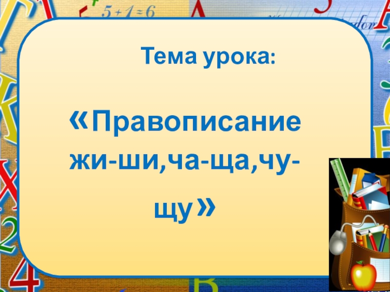 Тема урока:«Правописание жи-ши,ча-ща,чу-щу»