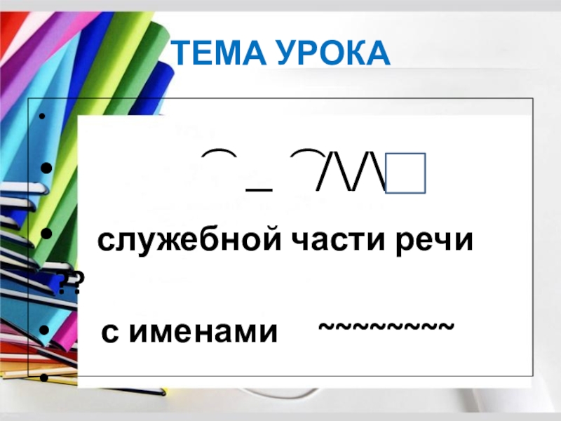 ТЕМА УРОКА ͡ ͟ ͡ /\/\ служебной части речи ?? с именами ~~~~~~~~