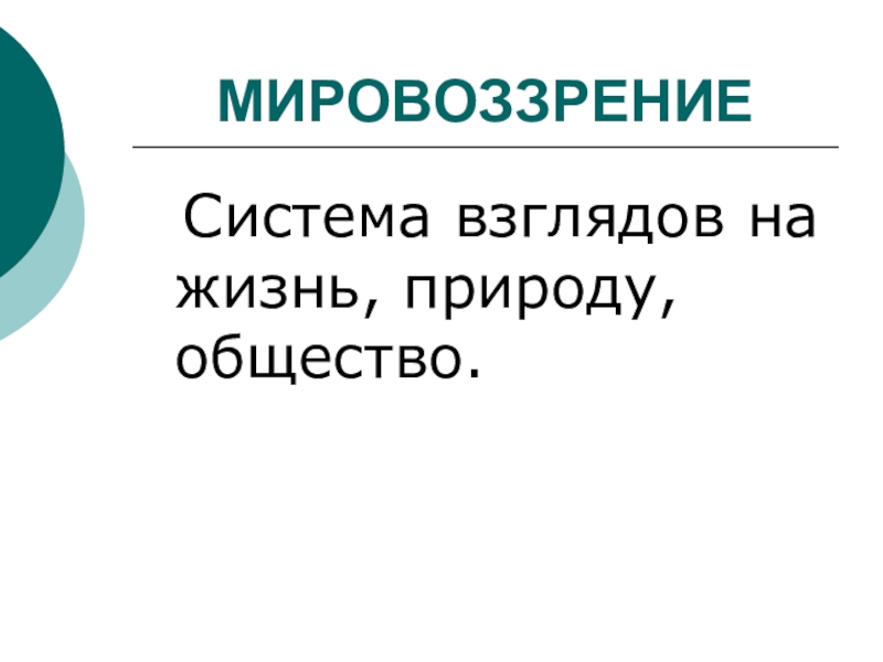 МИРОВОЗЗРЕНИЕ Система взглядов на жизнь, природу, общество.