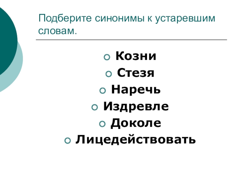 Слайд 8Подберите синонимы к устаревшим словам.