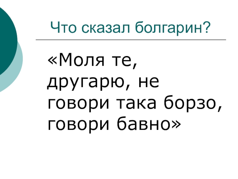 Что сказал болгарин?  «Моля те, другарю, не говори така борзо, говори бавно»